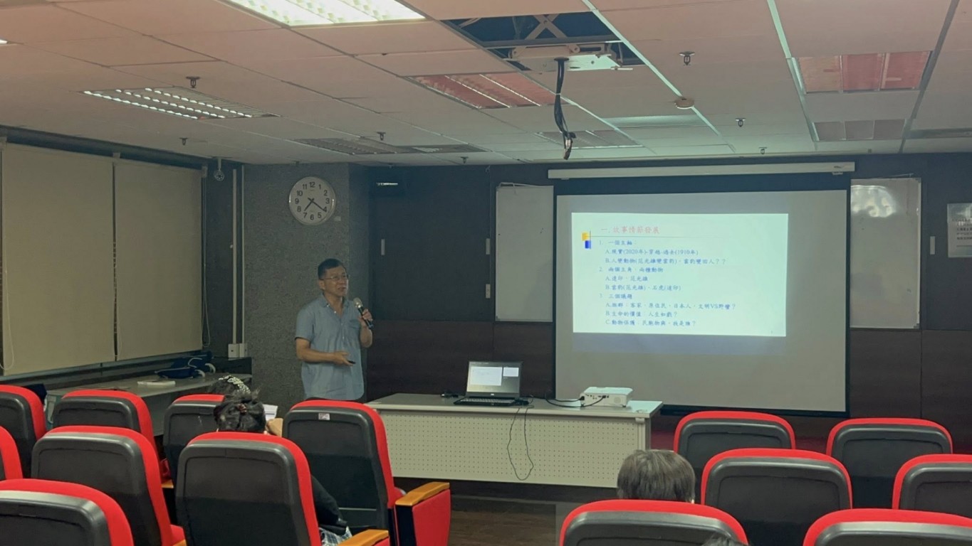 今日客家人文講堂邀請113年教育部閩客語文學獎客語組得獎者王興寶老師,分享《鬼貓仔》的故事情節及創作歷程。