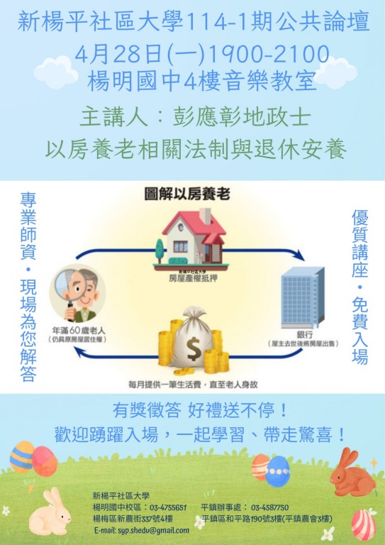 114/04/28 楊梅區公共論壇:以房養老相關法制與退休安養