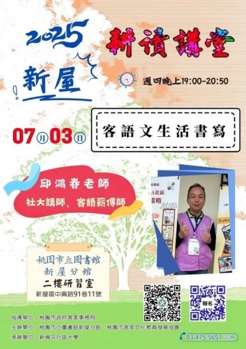 七月份的耕讀講堂,邀請到邱鴻春老師來分享客語書寫的心得和具體作法,獲得極大的迴響,老師從自身經驗出發,身體力行,把客語落實在日常的生活裡,多聽、多讀、常寫,找對方法,善用現代科技來幫助學習,讓客語的復振成為日常生活的一部份,講座精彩