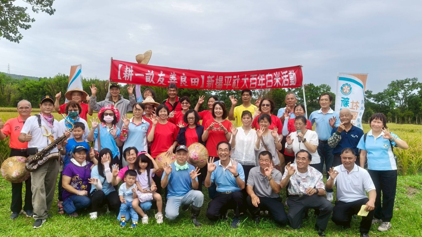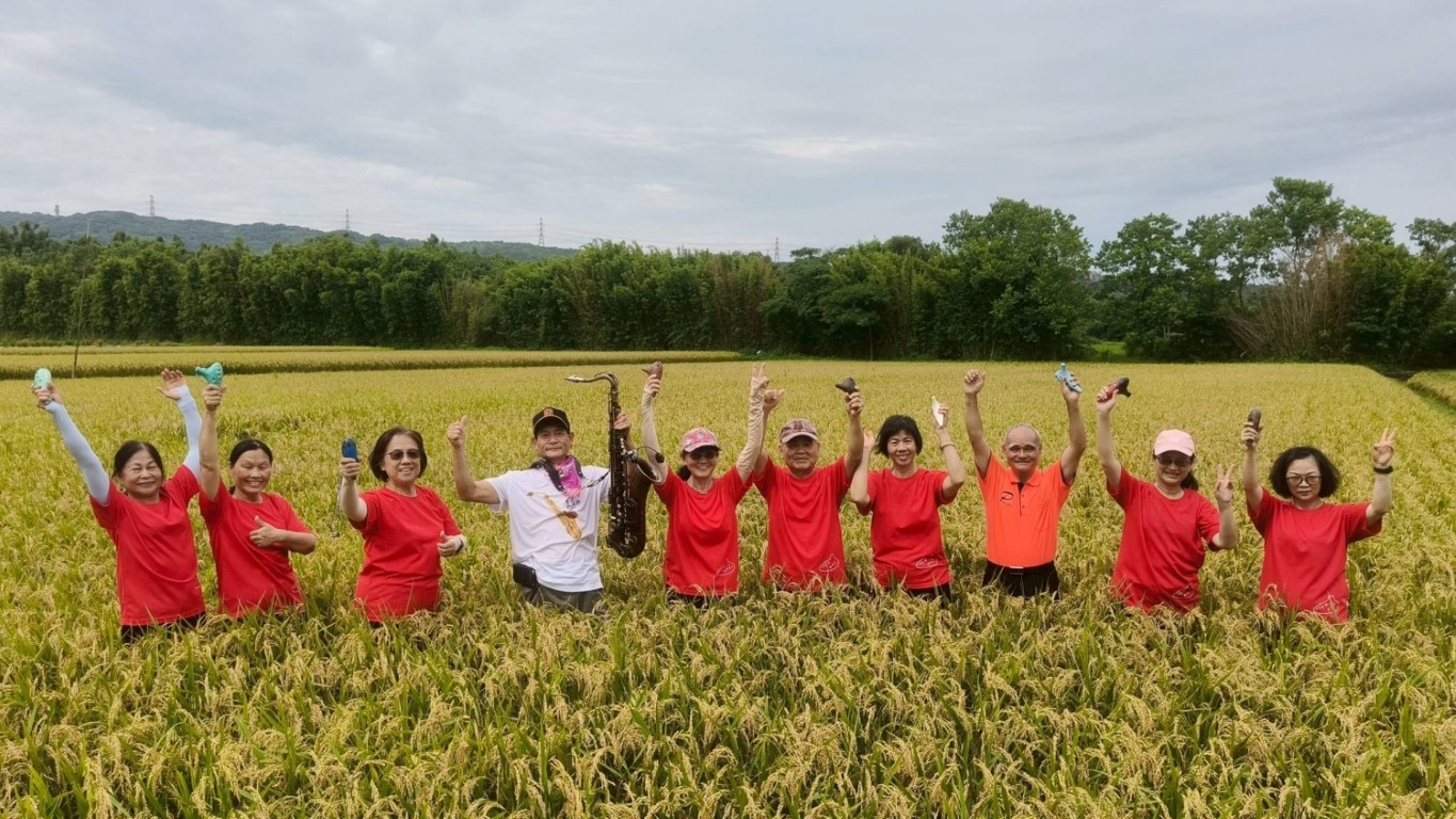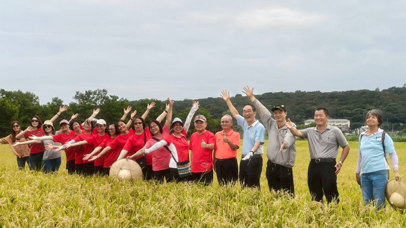 2025社大百年白米割稻活動,27日早上假楊梅實習農場舉行,在客家民俗禮儀班的師生帶領下,以傳統客家三獻禮方式辦理,頒發感謝狀,接著由陶笛班和薩克斯風班的音樂饗宴,最後一起品嚐客家的米食,為活動畫下圓滿的成果。