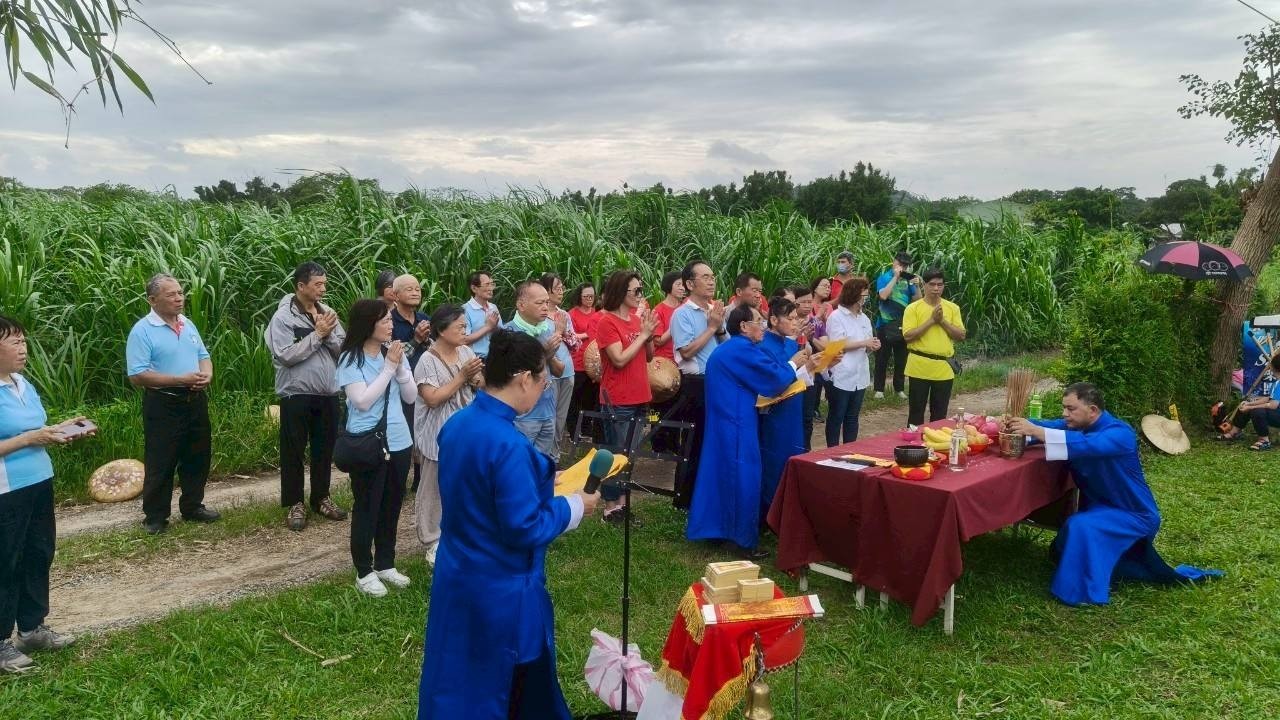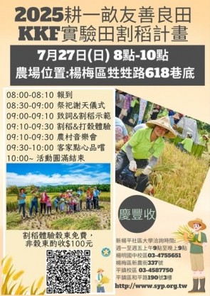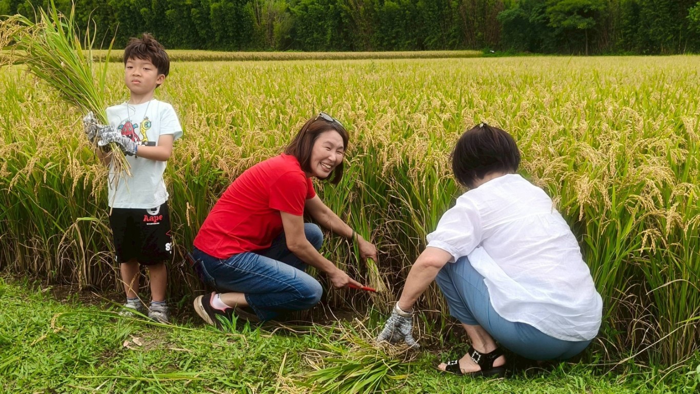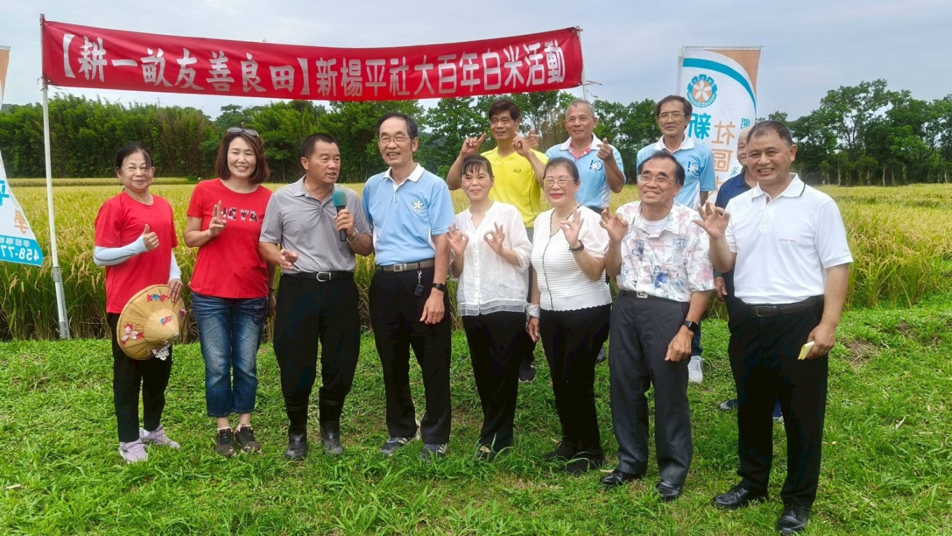 2025社大百年白米割稻活動,27日早上假楊梅實習農場舉行,在客家民俗禮儀班的師生帶領下,以傳統客家三獻禮方式辦理,頒發感謝狀,接著由陶笛班和薩克斯風班的音樂饗宴,最後一起品嚐客家的米食,為活動畫下圓滿的成果。