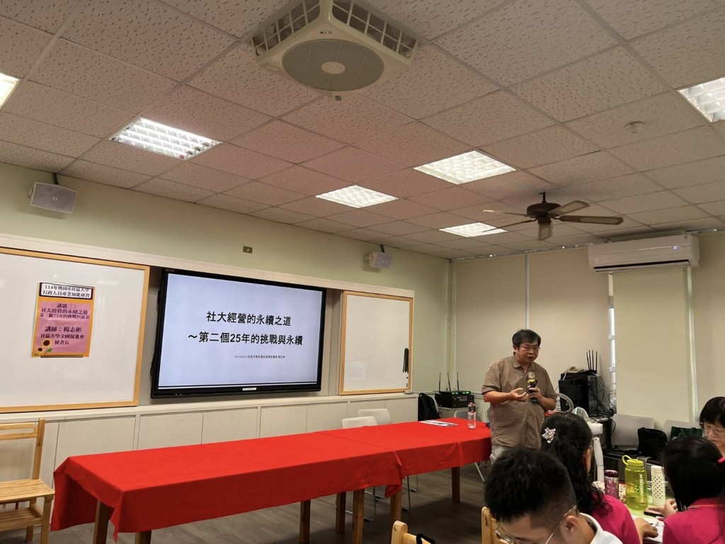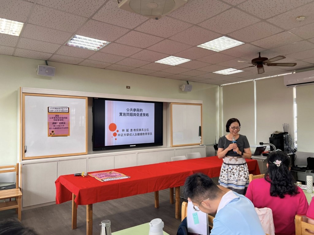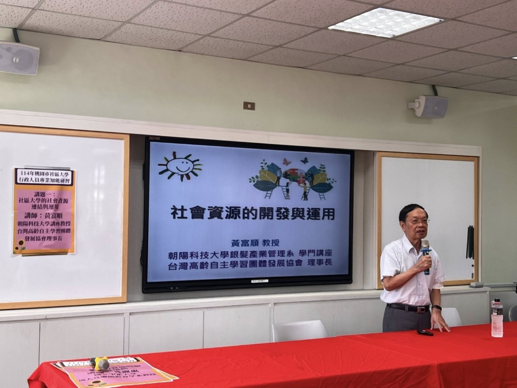 114年桃園市社區大學行政人員專業知能研習於龜山山頂國小舉辦。上午的課程由朝陽科技大學黃富順教授主講,分享了社大社會資源的開發與運用。下午則由中正大學成教系林麗惠教授談及社大公共參與的實施問題與促進策略,隨後,全促會楊志彬秘書長介紹了社大永續經營之道。一整天的研習課程讓參加的行政夥伴們深入瞭解社大理念與運作以及如何執行,提升了對未來社大經營的清晰認知,大家都收穫良多。