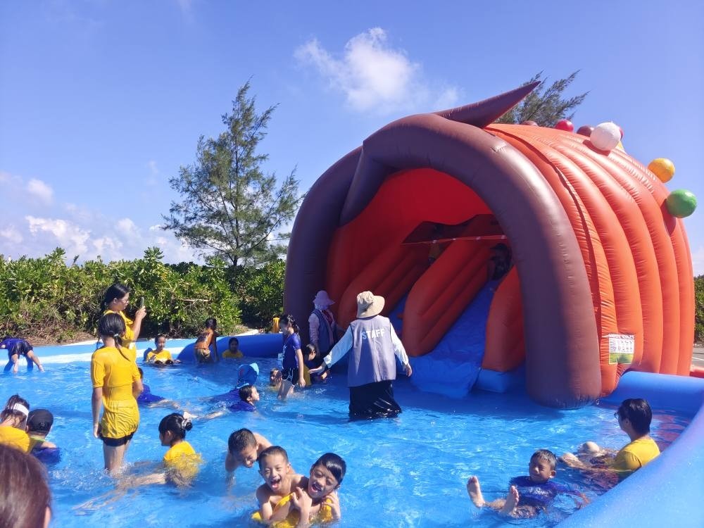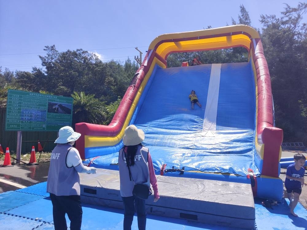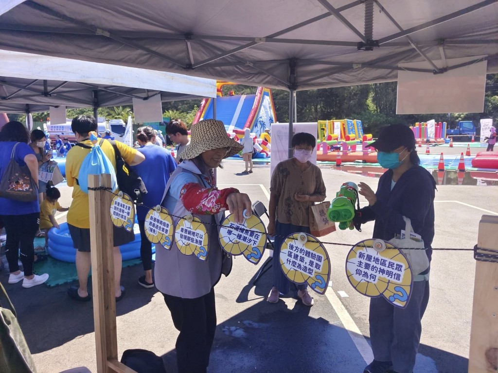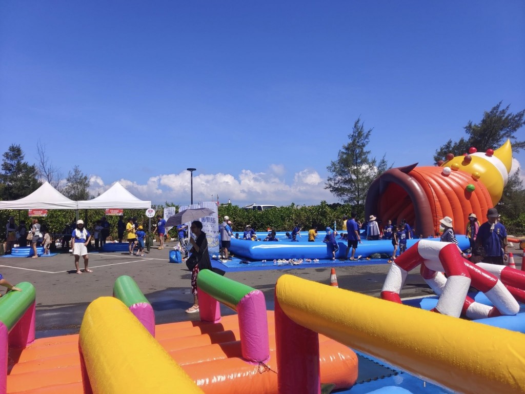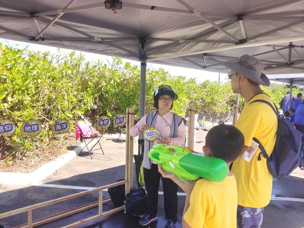 今日(8/23)新楊平社大的志工們來到了新屋永安海螺文化體驗園區舉辦的「2025桃園海客季—米寶路跑勇闖海客季」活動工作協助。 海客季包含了路跑水槍大戰、水上樂園挑戰及障礙賽,還有海客挑戰闖關等,大夥們都在和太陽公公比誰更熱情!炎炎夏日透過遊戲,親子共融,體驗桃園在地的語言與文化魅力,在暑假尾聲留下最難忘的回憶。