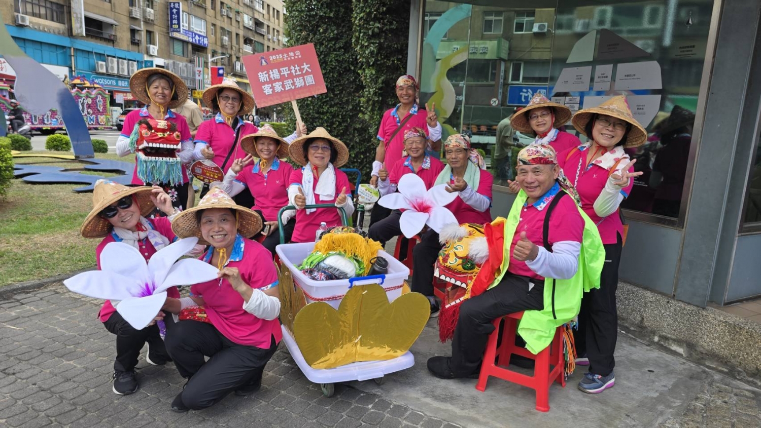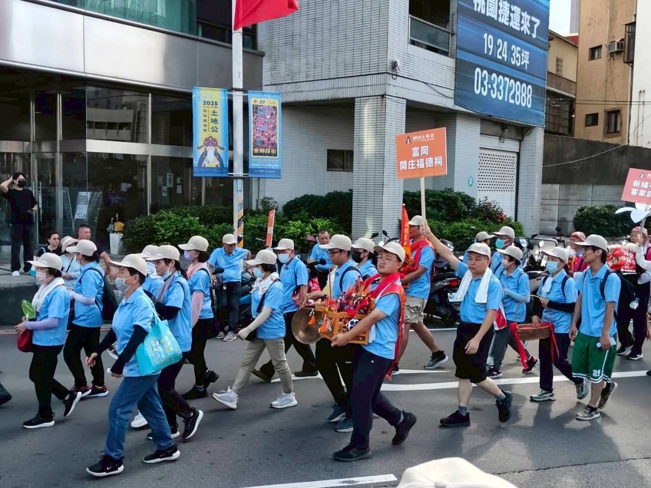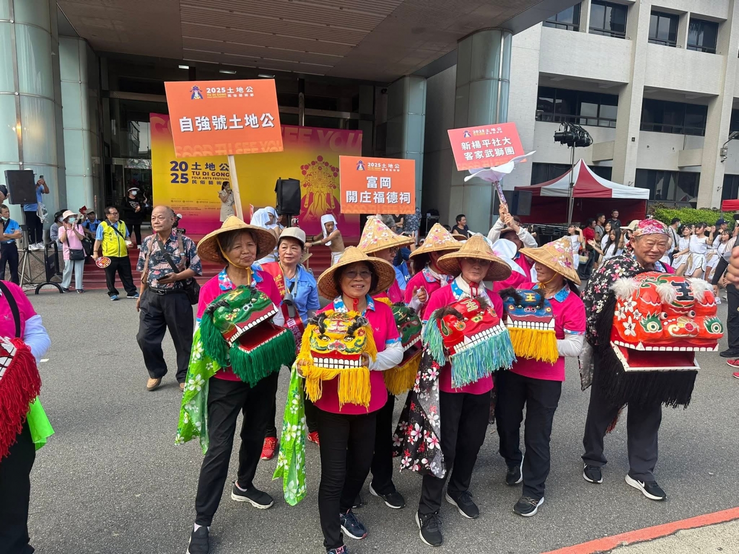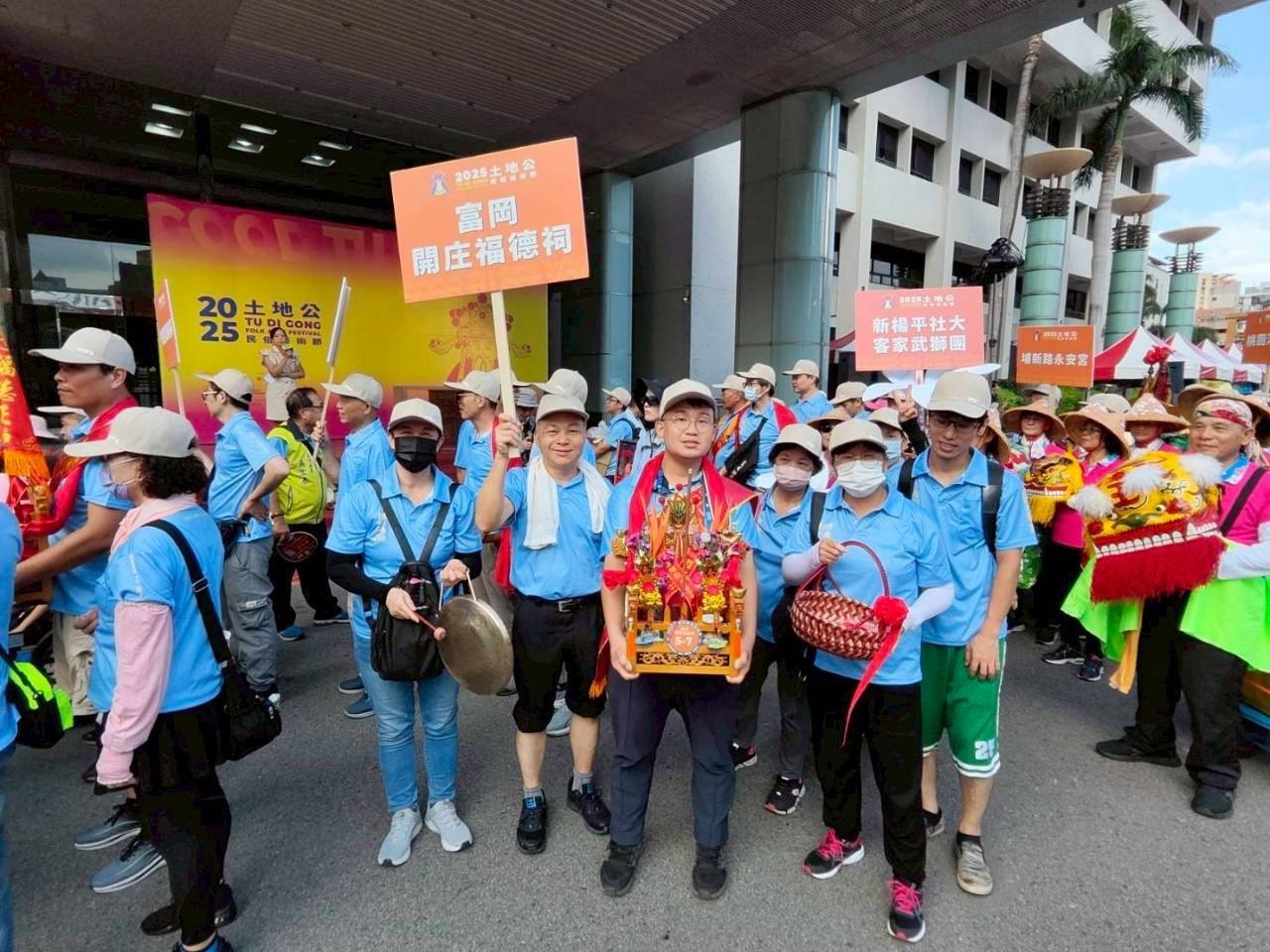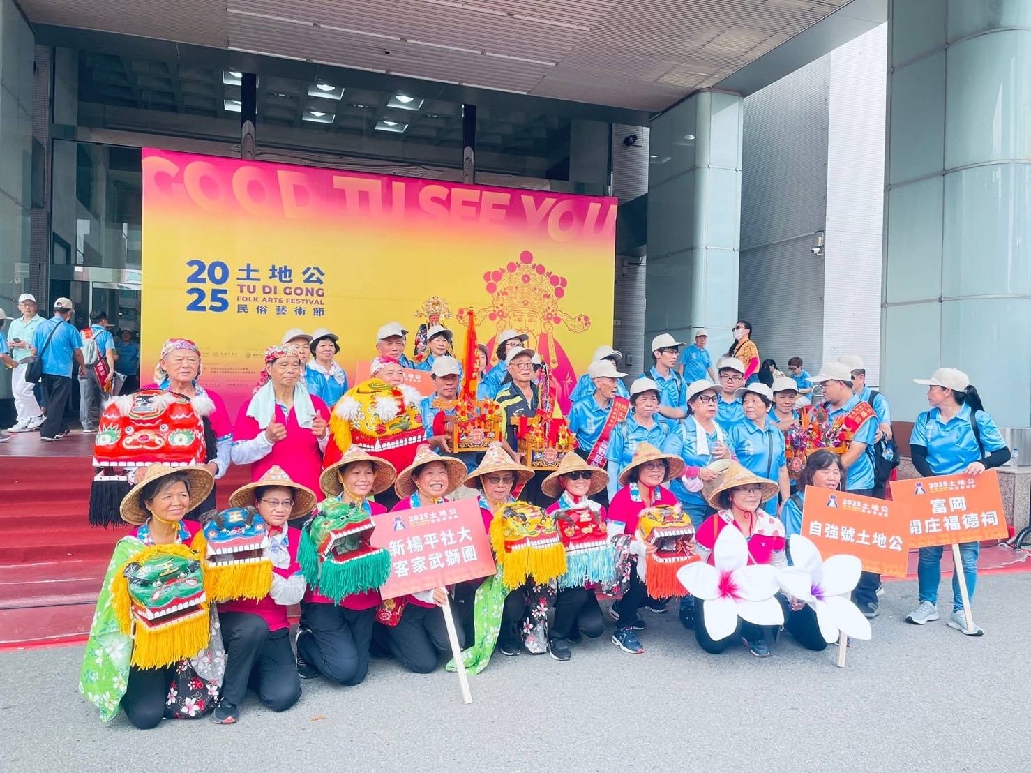 社大鏈結社區及非營利組織共同参與關心社區公共事務,在富富小山岡博舜及富岡區鴻春主任及孟溱社長的帶動下,2025年桃園市土地公文化藝術節踩街活動,伯公岡共有三間廟参與,包含開庄伯公、自強號伯公及妙靈宮,楊梅區胡溢恩主任也帶領社大客家武獅隊共同参與,這麼熱的天氣,大家辛苦了,也藉此機會讓客庄伯公和全台灣鏈結,一起傳承客家文化。相片提供:邱鴻春主任