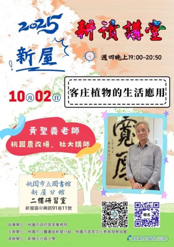 十月份耕讀講堂課程邀請到桃園農改場黃聖義老師來介紹〔客庄植物的生活應用〕,包含仙草、艾草、車錢草、鱼腥草等,包含功能、培養方法、注意事項等,獲益良多。