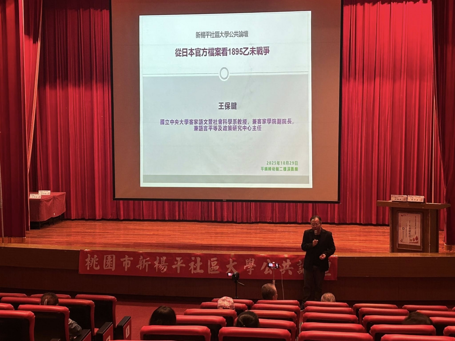 今天(10/29)邀請中央大學客家學院副院長-王保鍵教授,以「從日本官方檔案看1895乙未戰爭」。 王教授透過近期出土的史料,並透過淺顯易懂的講解,慢慢還原乙未戰爭的歷史真相,對社大學員而言,這是一項認識自身家鄉歷史故事的好經驗。 今天也非常感謝郭素真老師帶領的-太極導引藝術班的展演,讓今天的講座增添精彩!