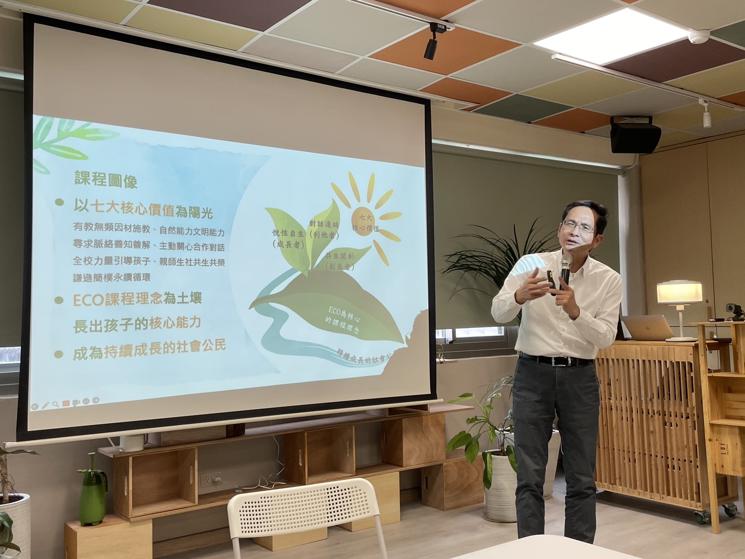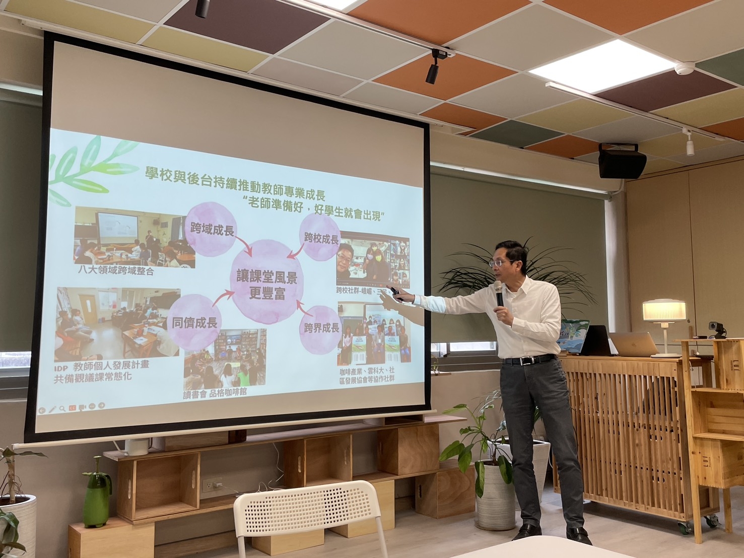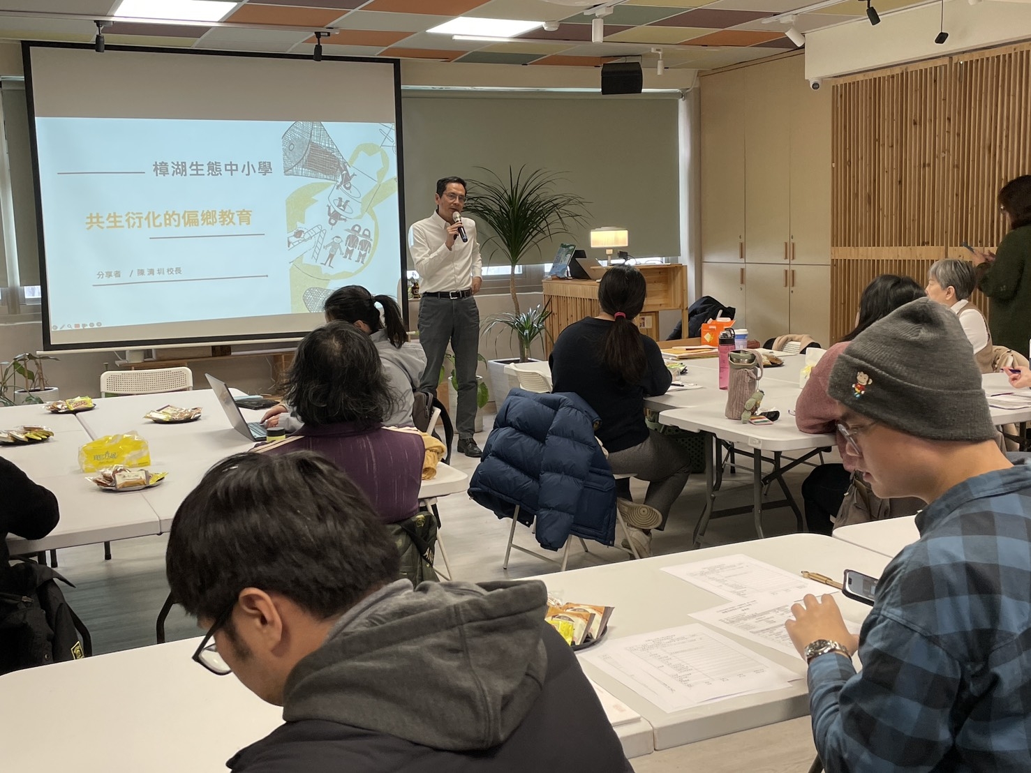 本場安排一場專題講座,由長期與社區合作、帶領學生參與社區行動、將在地元素納入學校課程的雲林縣樟糊生態國中小陳清圳校長分享「社大在學校本位課程中的角色」,