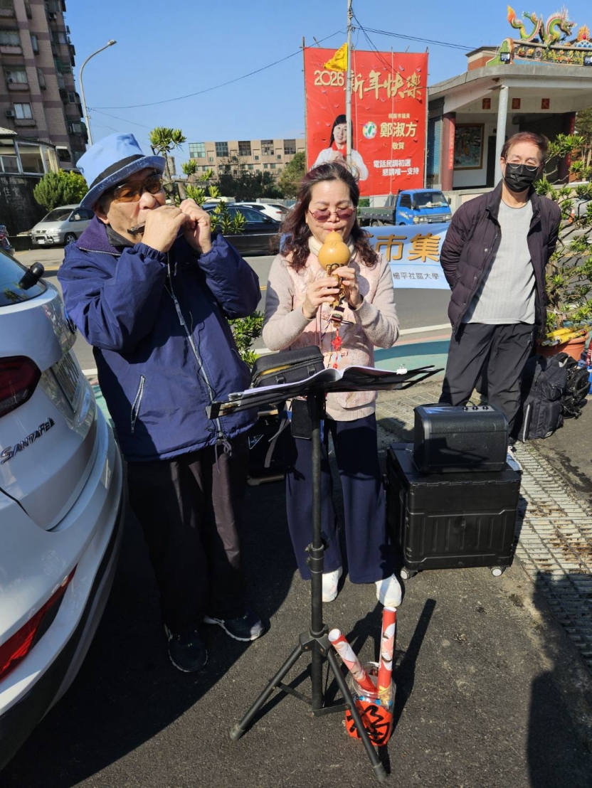 新年快到了 祝福各位老師學員 115年埔心區-新春愛心義賣招生活動 今天上午9~11時 在楊梅 三元宮 前舉行~ 感謝 孫素琴老師熱情演出 今天咖啡班詹老師也來秀一手口琴呢~ 恭喜恭喜 共同祝賀新年到來~ 感謝各位志工夥伴、老師也到場共襄盛舉協助招生發送簡章。 歡迎報名新楊平社區大學課程~